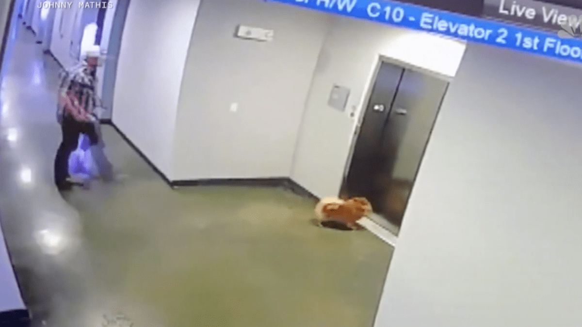 WATCH Man Rescues Dog After Leash Gets Caught in Elevator NBC