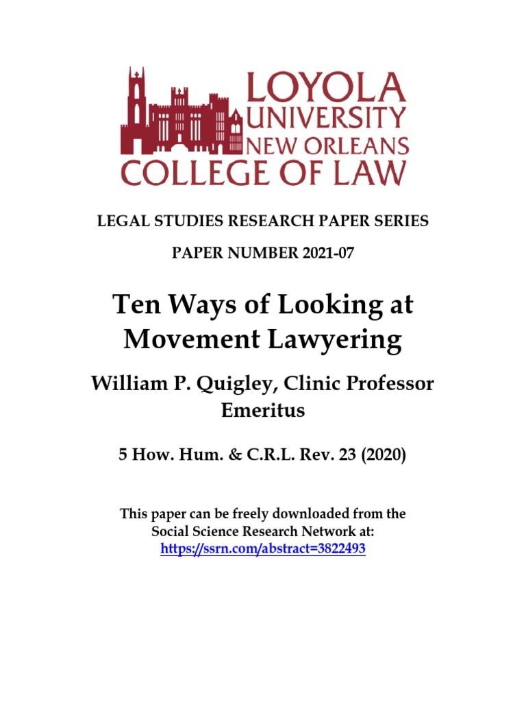Ten Ways of Looking at Movement Lawyering PDF Lawyer Justice