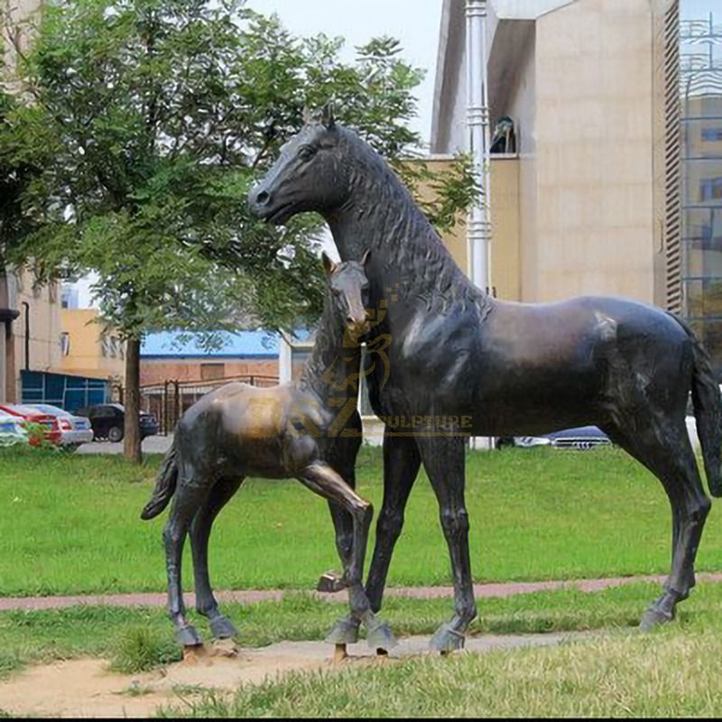 Outdoor decoration metal bronze mother and baby horse sculpture