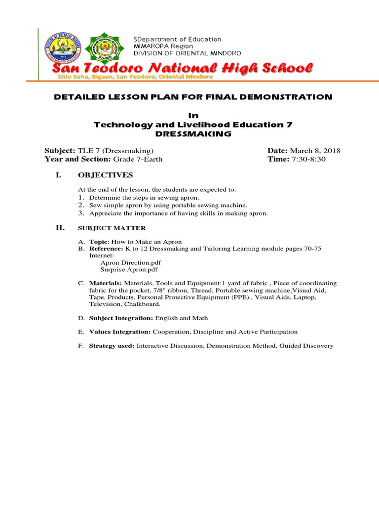 Semi Detailed Lesson Plan In Tle Dressmaking Sewing Sewing Machine Vrogue Lesson Plan In Sewing Tools All tools must be appropriate in a proper order and one must know how to use them to save time and produce the best result. The lesson involves grouping students to classify tools into measuring, cutting, drafting, marking and sewing categories. This document outlines a lesson plan about classifying different sewing tools according to their use for measuring, cutting, and. Lesson Plan In Sewing Tools.