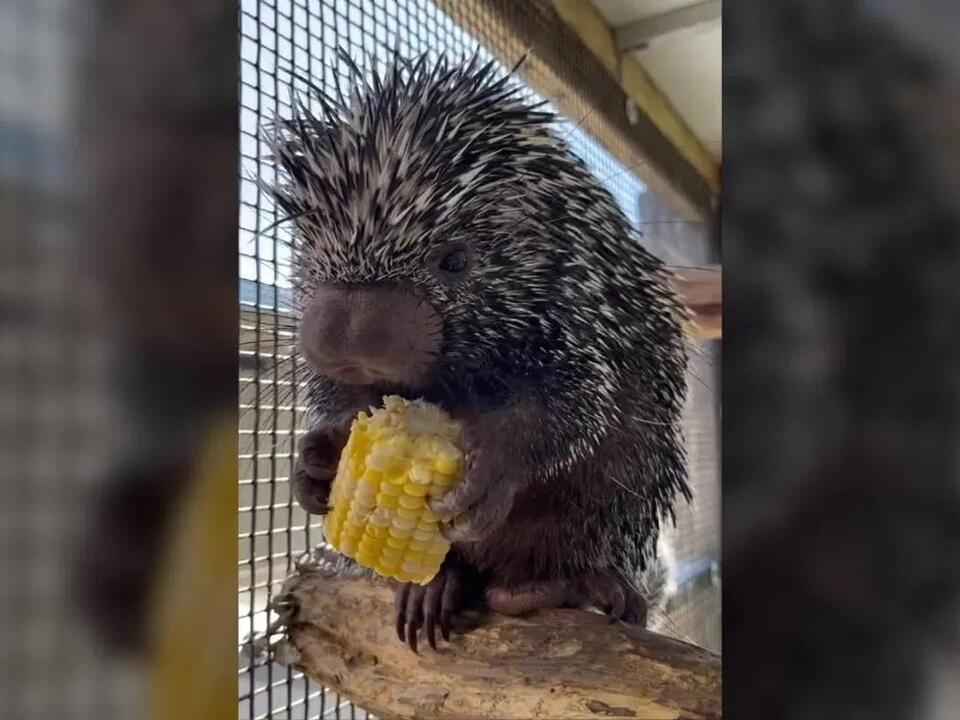 Viral video Teddy the porcupine loves corn and doesn't like to share Porcupine Eating Corn On Cob Footage released by the zoo shows rico chowing down on corn, being gently pet, and curiously sniffing the camera. Porcupine Eating Corn On Cob.