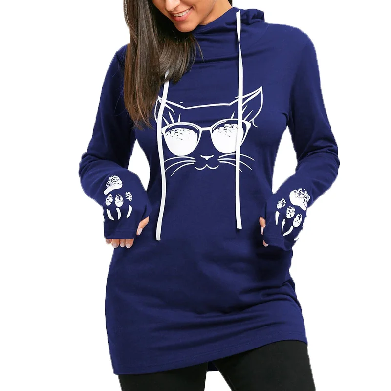 S5xl Oversize Cat Printed Hoodies Sweatshirts Female Casual Long