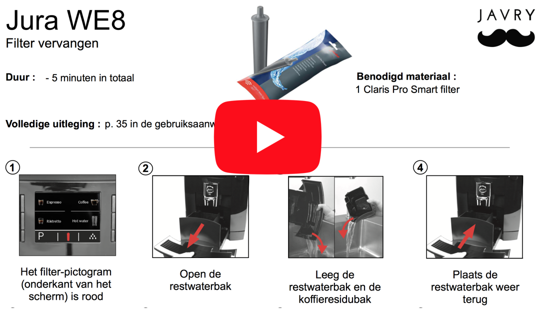 het gebruiken van een waterfilter in je jura e8 is belangrijk en heel eenvoudig met deze handige video en gebruiksaanwijzing. Het waterfilter voorkomt kalkaanslag zodra je hem op tijd vervangt. Haal uit het waterreservoir de. stappenplan voor het waterfilter vervangen van de jura e8. Leeg het waterreservoir van de koffiezetapparaat. bekijk op deze pagina hoe je het claris smart waterfilter in jouw jura e8 plaatst.