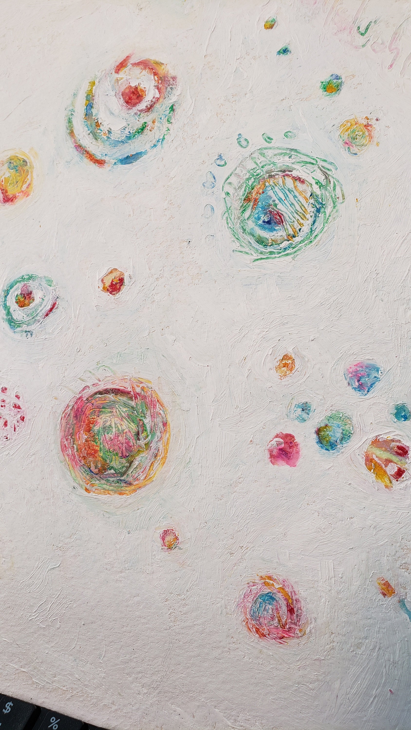Waltzing Bubbles Colorful Oil Pastel on Watercolor Paper 15 X 11