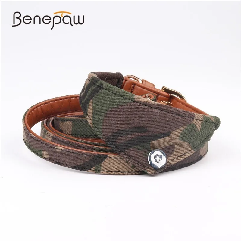 Benepaw Pu Leather Dog Collar Leash Set 3 Patterns Metal Buckle Pet