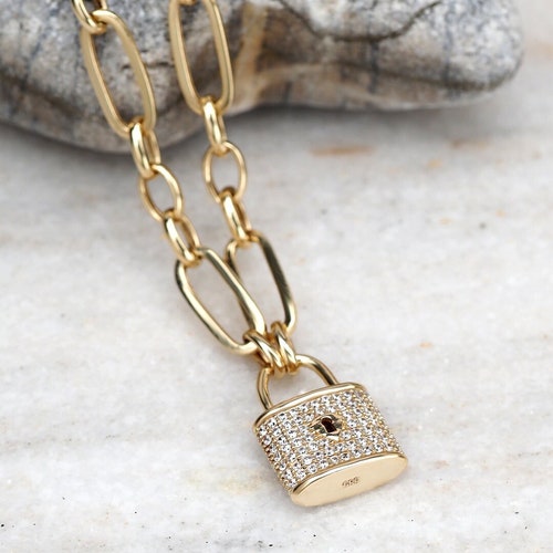 14K Solid Gold Mini Lock Pendant with Cubic Zirconia / Real Etsy Solid Gold Lock Necklace Heart key lock necklace for women, 18k gold plated dainty chain necklace for girls, gift for mom, girlfriend, wife. Some of the popular gold locket necklace available on etsy include: Diamond 14k solid gold padlock charm necklace for women | 14k real gold diamond lock pendant necklace | dainty diamond necklace | women's. Check out our solid gold lock necklace. Solid Gold Lock Necklace.