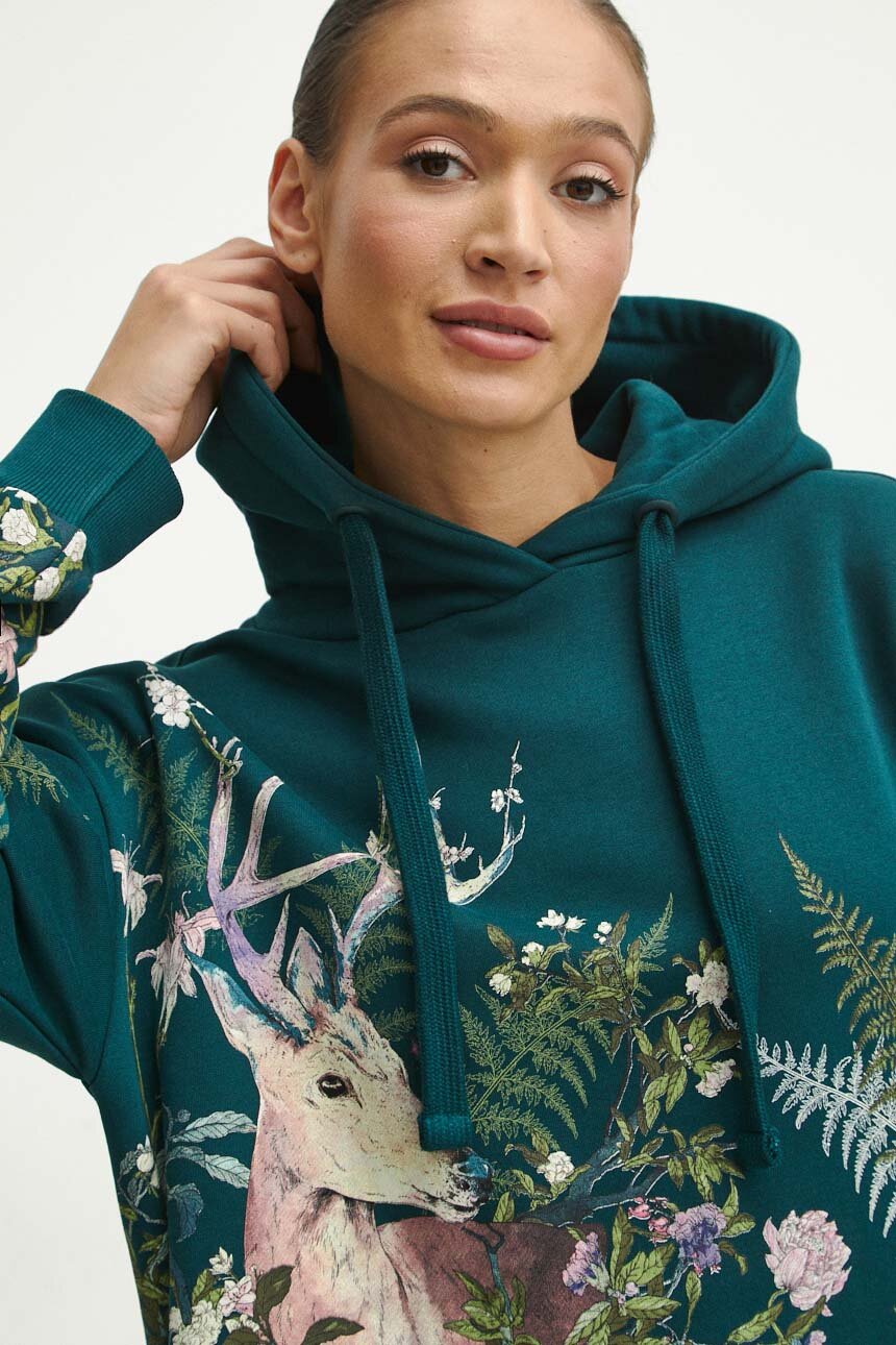 Medicine bluza damska kolor turkusowy z kapturem z nadrukiem