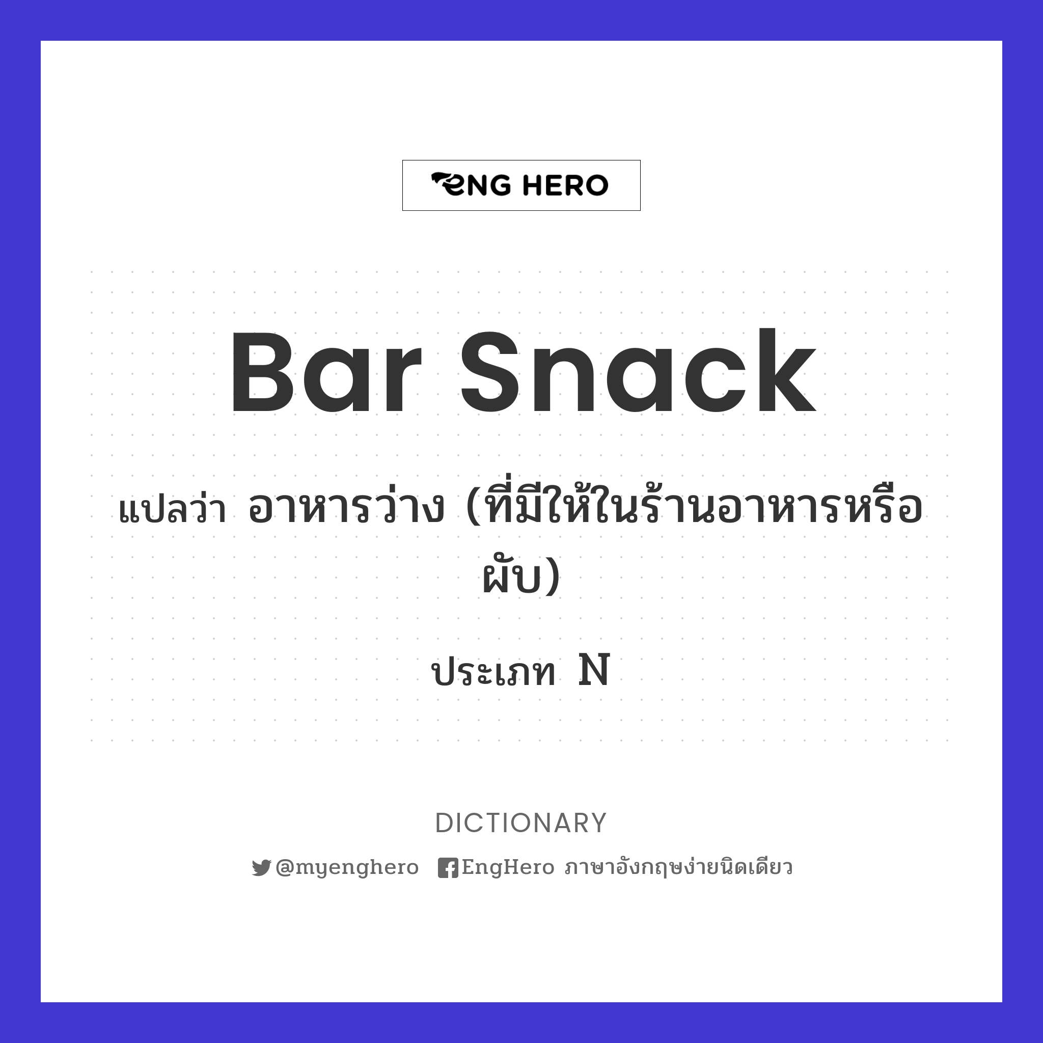Bar Snack แปลว่า อาหารว่าง (ที่มีให้ในร้านอาหารหรือผับ) Eng Hero