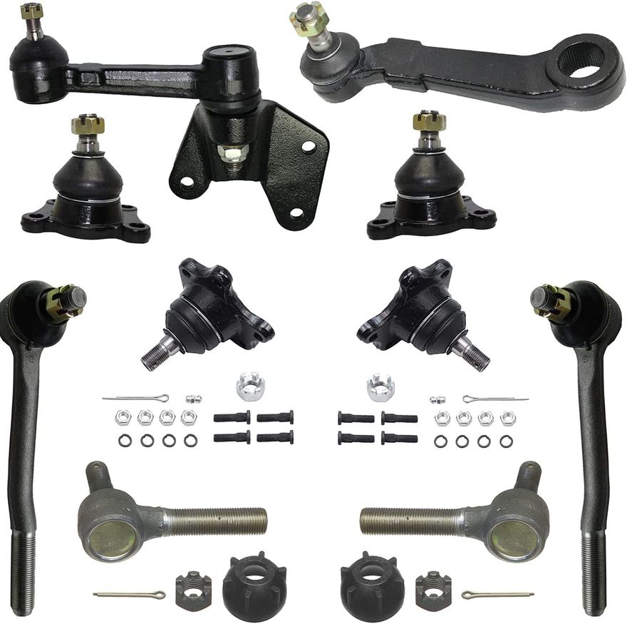 10pc Front Tie Rods Ball Joints Pitman and Idler Arms Suspension Kit