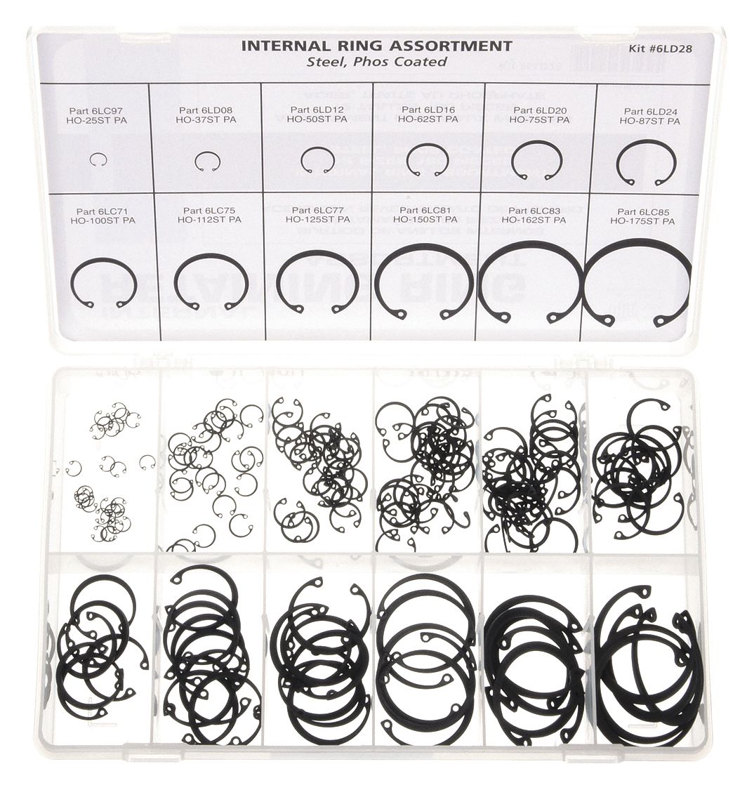 Housing Ring, Steel, Retaining Ring Assortment,180 pcs 6LD28