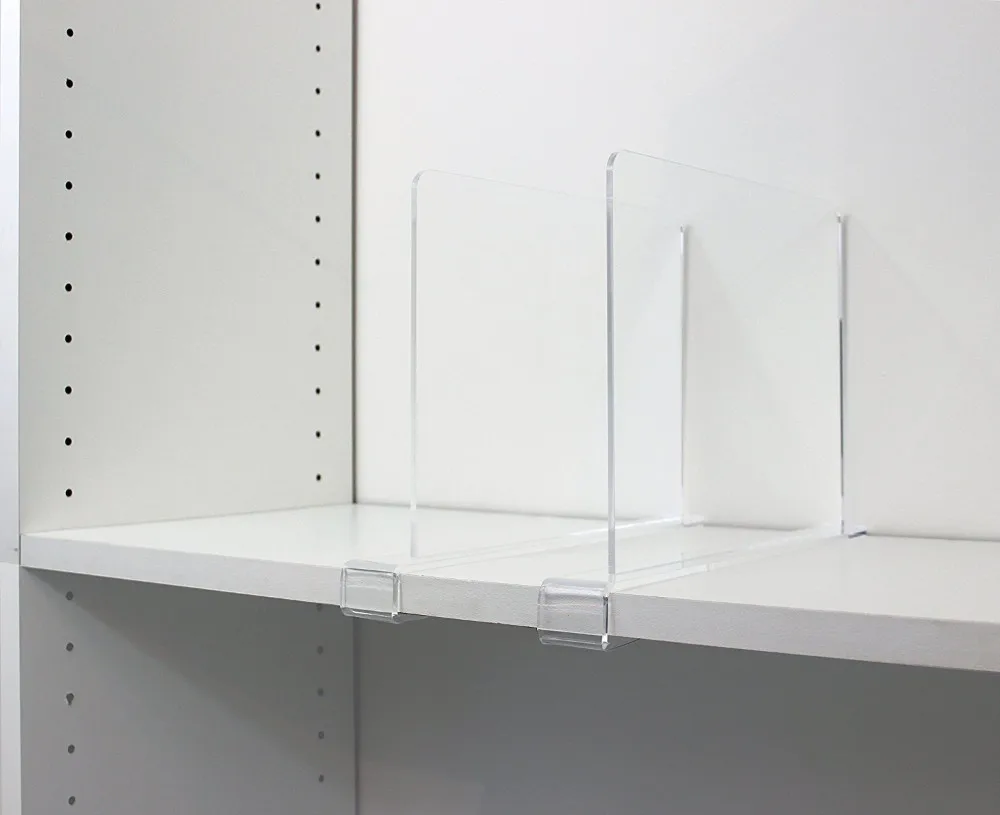 Acrylic Shelf Dividers Acrylic shelf dividers, clear shelf divider for closets, plastic shelve divider for clothes purses separators, wood shelves organizer for. Our value pack of two. Acrylic shelf dividers, 4 pack clear shelf dividers, plastic closet shelve divider for clothes purses separators, adjustable wood shelves. For clothing, linen, wallet separators, multifunctional closets, kitchen cabinets, bedrooms, use acrylic shelf dividers to divide. Maximize. Acrylic Shelf Dividers.