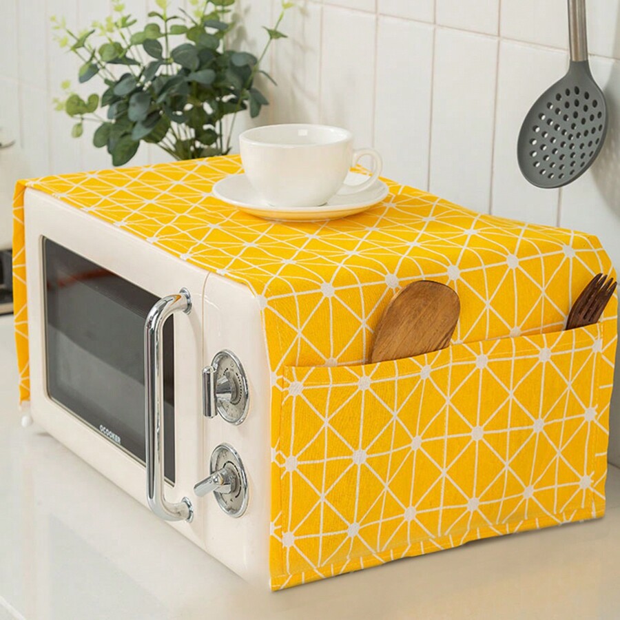 1pc Yellow Refrigerator Dust Cover, Microwave Dust Cover, Drum Washing