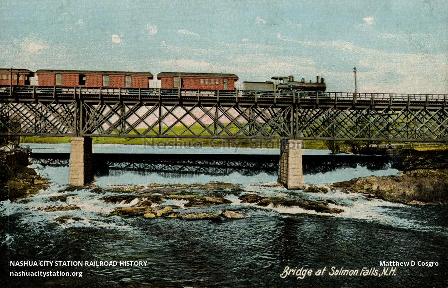 Postcard Bridge at Salmon Falls, N.H. Railroad History