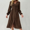 Fnooota Womens Midi Dresses, Casual Spring Fall V Neck Long Sleeve