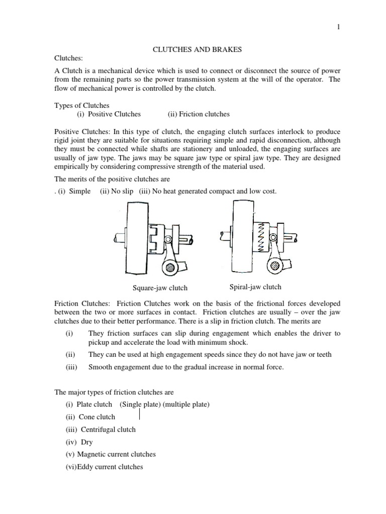 Basic Clutches and Brakes betech Brakes And Clutches Pdf Friction clutches‐ single disc or plate clutch, multiple disc clutch, cone clutch, centrifugal clutch. Clutch is a mechanical device, which is used to connect/ disconnect the source of power from the remaining parts of the power transmission. This chapter on disk brakes and clutches will consider annular contact disk clutches and both caliper and annular contact. The material used for. Brakes And Clutches Pdf.
