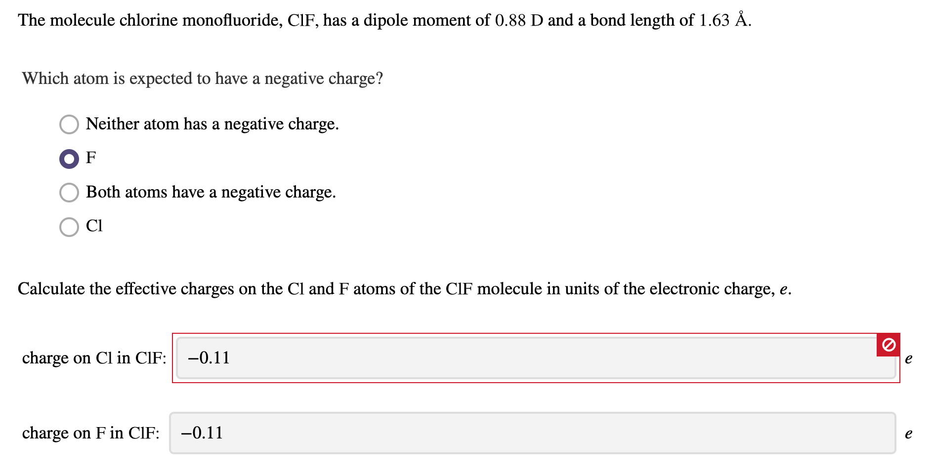 Solved The molecule chlorine monofluoride, CIF, has a dipole