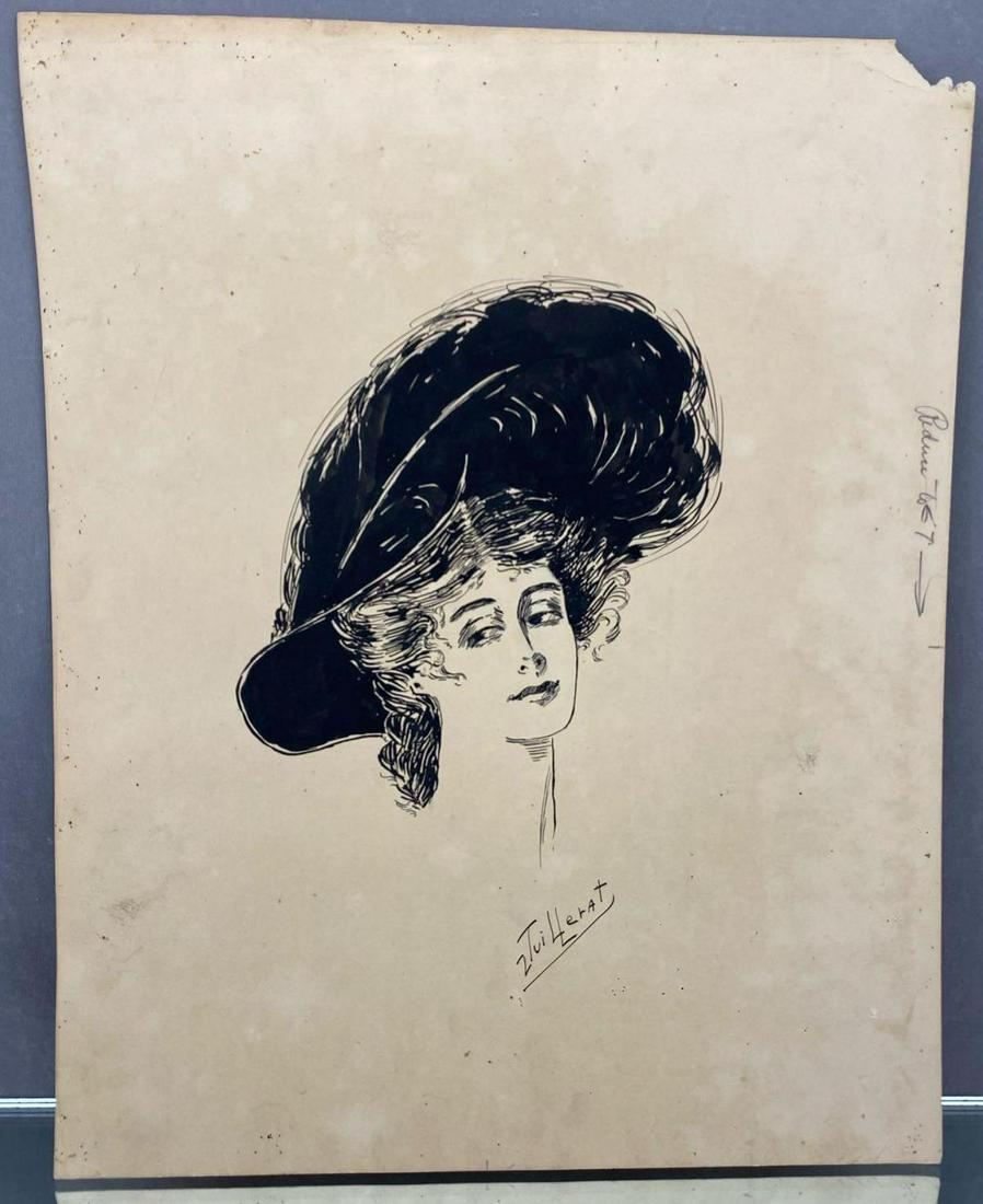 Art Nouveau Ink Drawing Jan 12, 2020 Clark's Auction Company in CA