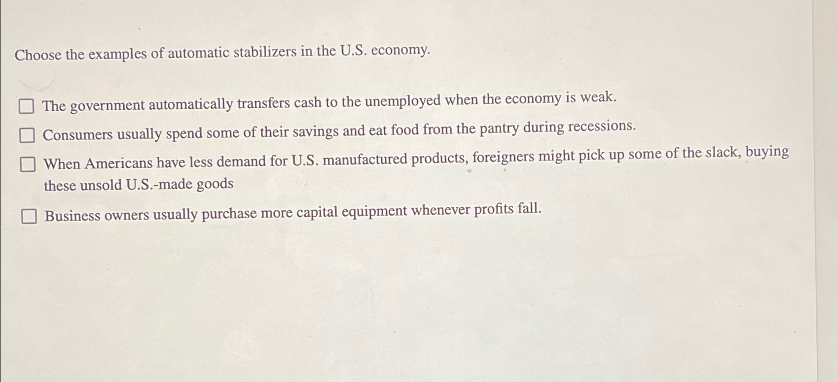 Solved Choose the examples of automatic stabilizers in the