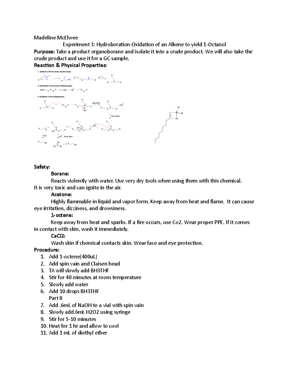 Experiment 3 Lab report Madeline McElwee Experiment 3 Hydrobora7on