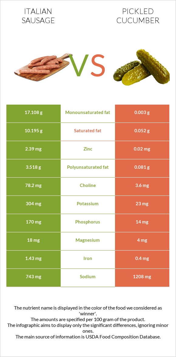 Italian sausage vs Pickled cucumber InDepth Nutrition Comparison