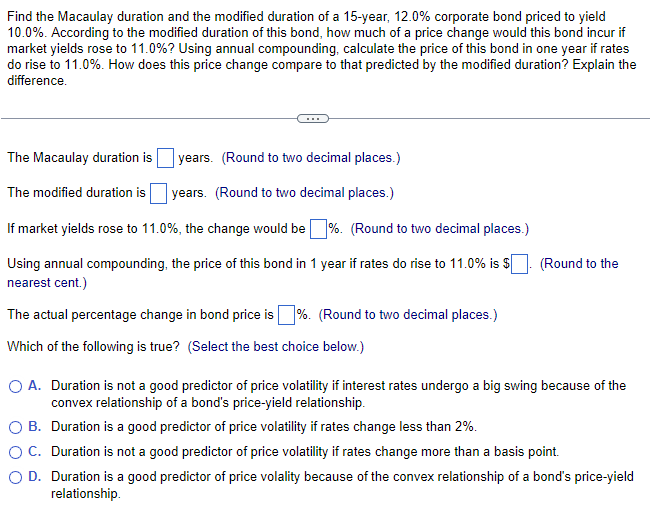 Solved Find the Macaulay duration and the modified duration