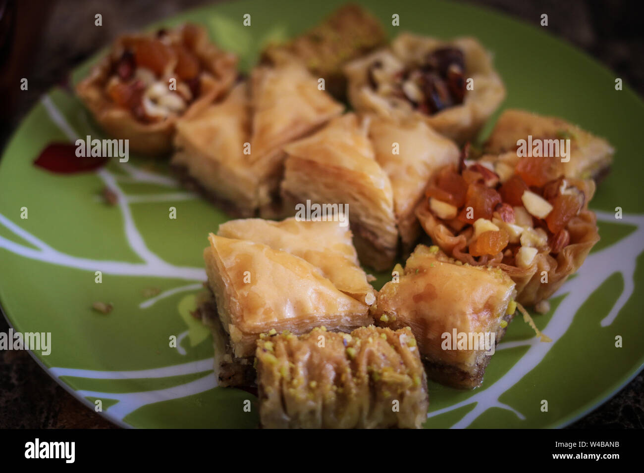 delicious sweet Mediterranean desserts baklava, nuts etc Stock Photo