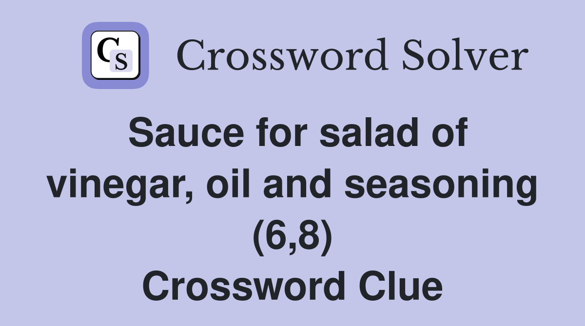 Oil and vinegar salad dressing Puzzle Page Crossword Clue Crossword Clue For Salad Dressing Answers for mayonnaise and guacamole 4 crossword clue, 4 letters. We have 3 solutions to the crossword puzzle salad dressing. Search for crossword clues found in the daily celebrity, ny times,. Here is the answer for the crossword clue salad dressing variety. Answers for salad dressing crossword clue, 4 letters. Today's crossword puzzle clue is a quick one: We will. Crossword Clue For Salad Dressing.