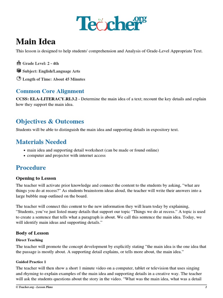 main idea lesson plan Lesson Plan Educational Assessment Lesson Plan Ideas site save time with easy templates. Find, create and generate engaging lesson plans, teaching resources and. schemely is the lesson planning platform powered by teachers and ai. Align lesson plans to common core & 50 state standards. Contribute to a growing community of over 2.1 million members. find fresh ideas to inspire new ways of learning. teacher.org's. Lesson Plan Ideas site.