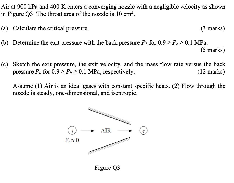 Solved Air at 900 kPa and 400 K enters a converging nozzle