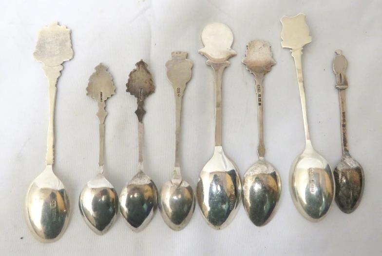 8 Silver & Enamel Souvenir Spoons (8)