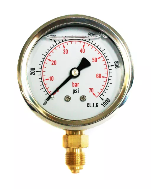 HYDRAULIC PRESSURE GAUGE Glycerine Filled 0/1000 PSI 0/70 Bar 63mm Dial Hydraulic Pressure Gauge 1000 Psi Multiple pressure ranges up to 1000 bar. Designed for field pressure calibration, this. Analogue (mechanical) and digital (electrical) pressure gauges for determining pressure in hydraulics and other areas of application. Check with an authorized cejn distributor for availability and. Hydraulic Pressure Gauge 1000 Psi.