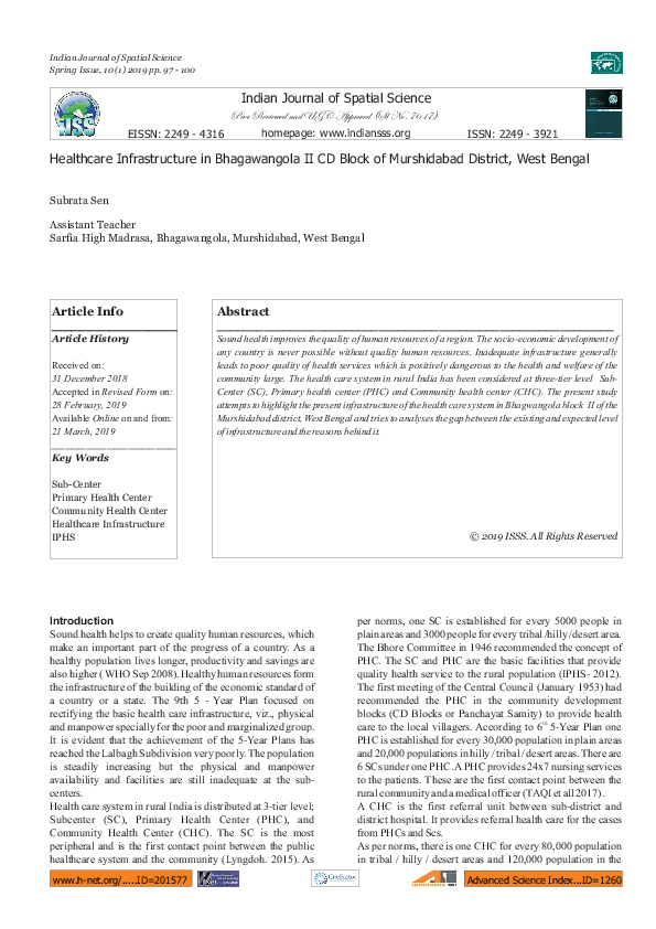 (PDF) Healthcare Infrastructure in Bhagawangola II CD Block of