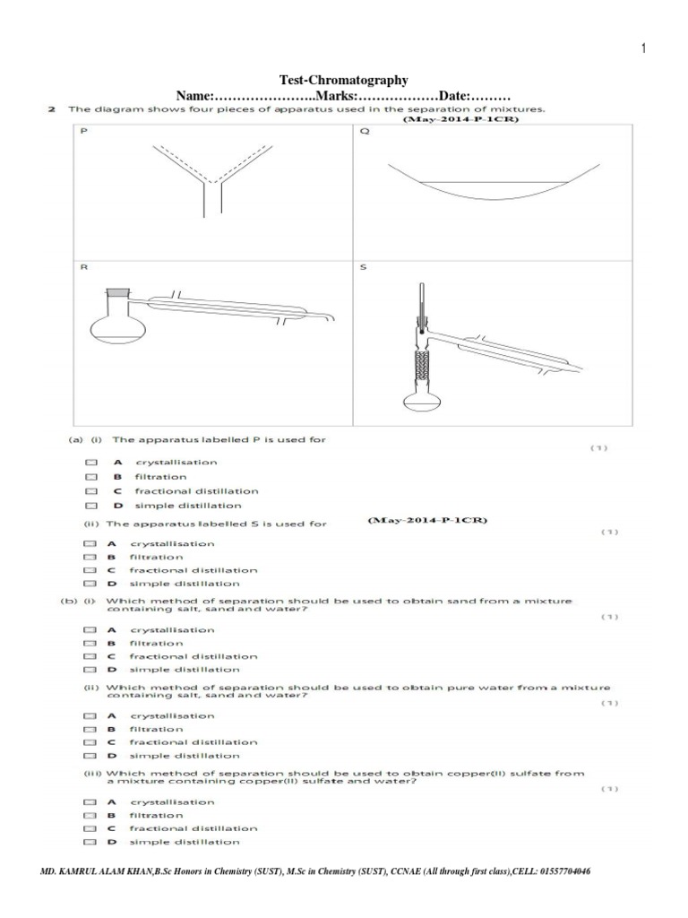 Quiz & Worksheet Chromatography Chromatography Questions Igcse Exam style questions paper 2 prepared by. For each question there are four possible answers a, b, c and d. Chromatography can be used to separate mixtures into their component compounds. Writer your answers in the spaces provided in this question paper. By calculating \text {r}_f values, paper chromatography can be used to identify different chemicals from a mixture. 1. Chromatography Questions Igcse.