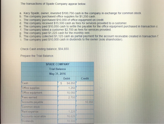 Solved The transactions of Spade Company appear below a.