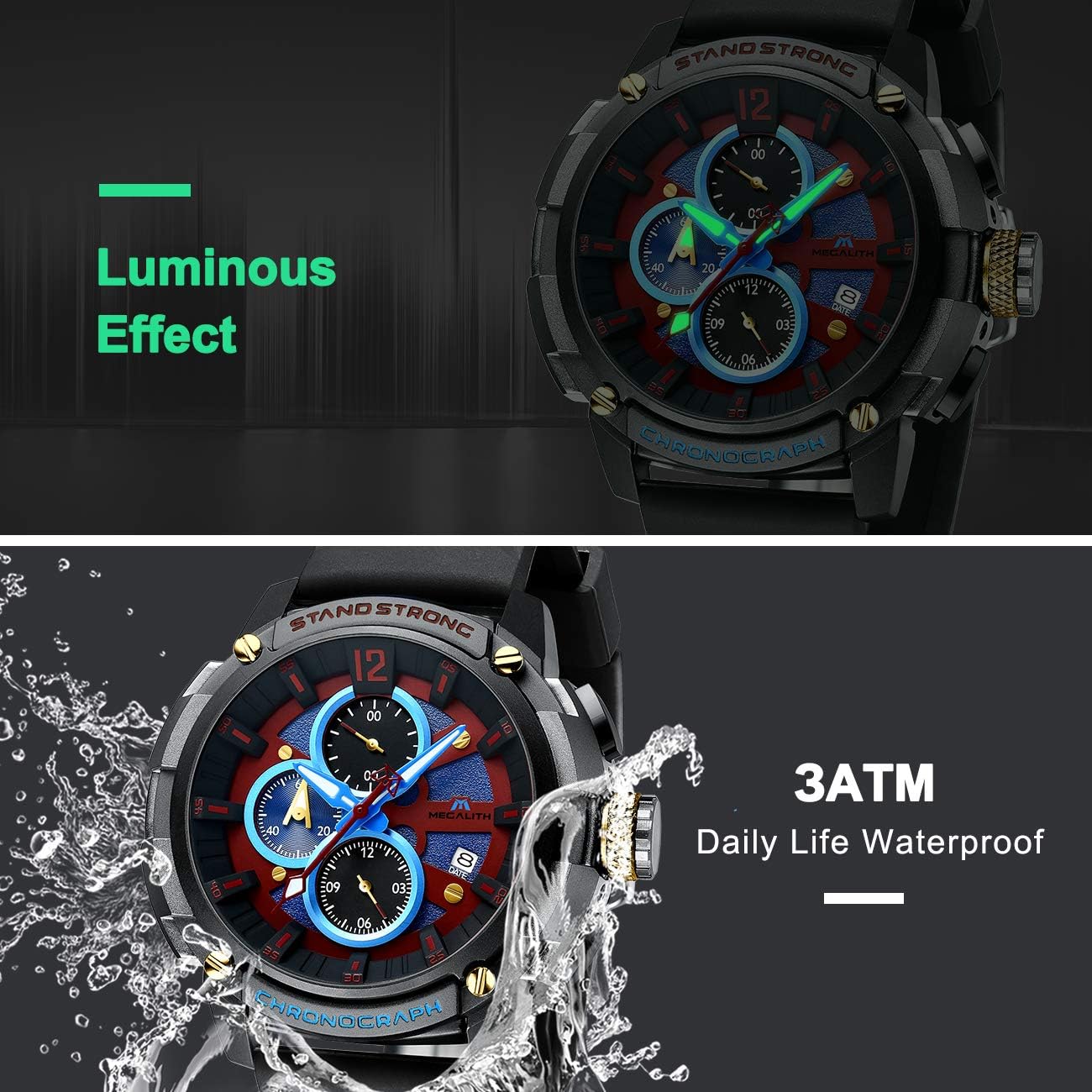 Buy MEGALITH Men's Watch 50mm Rubber Chronograph Waterproof Large Face