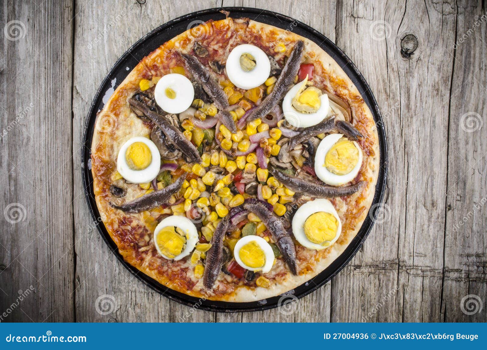 Pizza Con L'uovo E L'acciuga Fotografia Stock Immagine di ingredienti