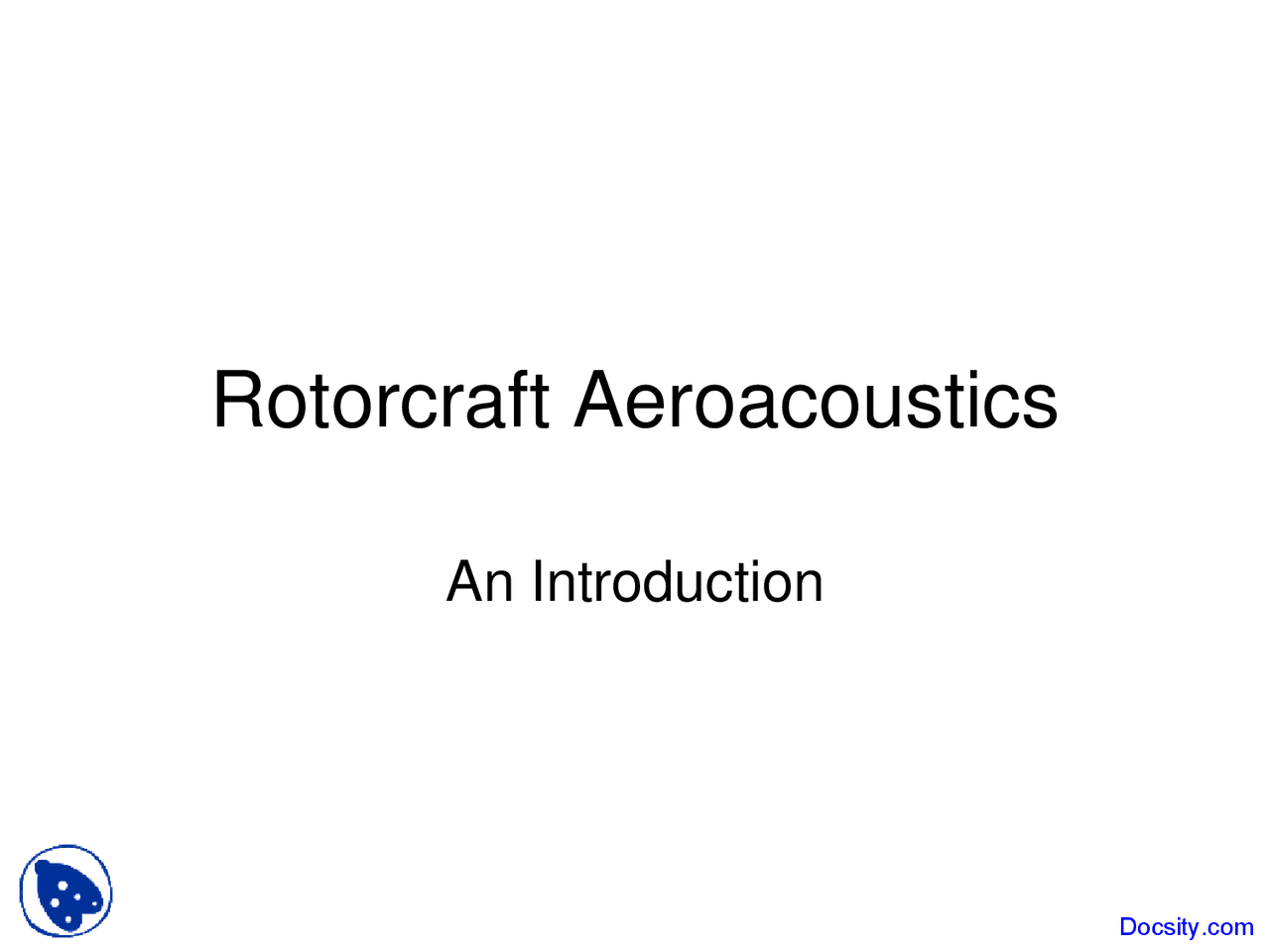 Rotorcraft Aeroacoustics Rotorcraft Aerodynamics Lecture Slides