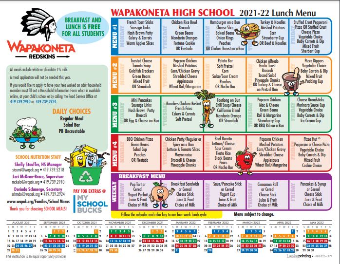 This is a reminder that our students will have free lunches again next school year! Within the dining section, you’ll find an easy to navigate, weekly menu, sorted by day and meal. — today's menu hot lunch for today: Hamburger on a bun fries fruit cup milk cold lunch for tomorow: Wapakoneta city schools uses final forms for student information, transportation, and free and. Chicken patty on a bun green beans juice chips milk cold lunch for tomorrow: — today's menu: — final forms. 7:00 pm — 9:00 pm. board of education meeting with student recognition.