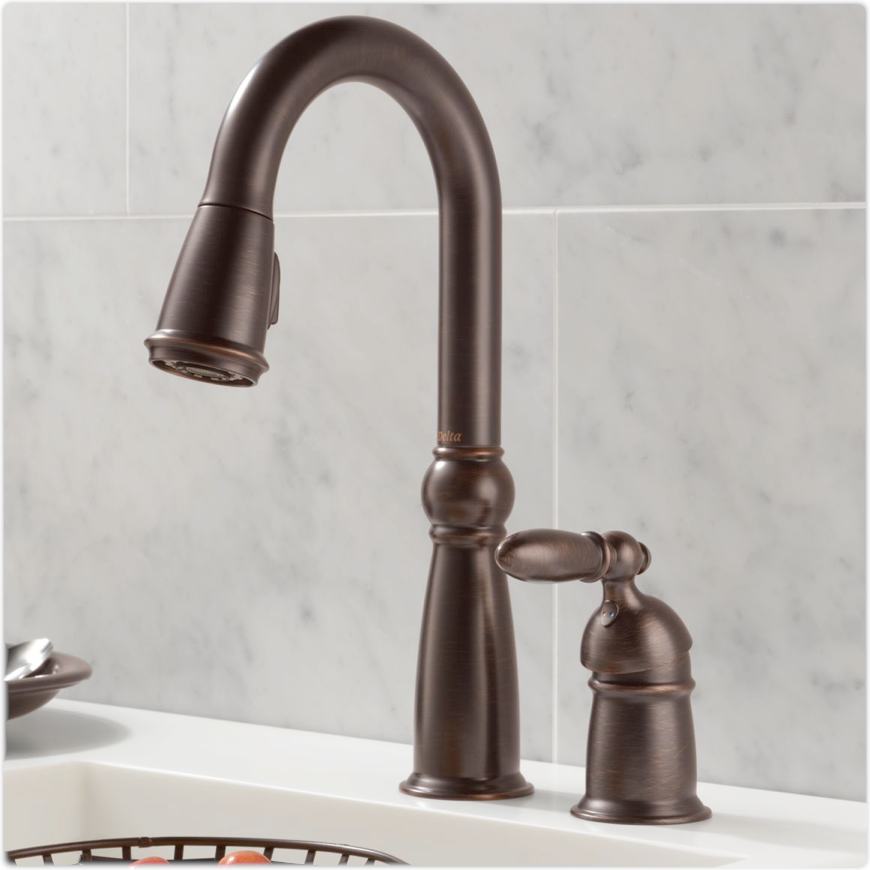 Delta 955RBDST Victorian Single Handle PullDown Kitchen Faucet Delta Victorian Venetian Bronze Kitchen Faucet (1) kitchen sink faucet with. delta ® faucets with diamond™ seal technology perform like new for life with a patented design which reduces leak. venetian bronze kitchen faucets. Browse delta's collection of faucets with venetian bronze finish. venetian bronze kitchen faucets. This hardware package includes 2 delta kitchen fixtures; find the delta faucet single handle kitchen. Delta Victorian Venetian Bronze Kitchen Faucet.