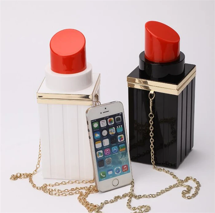 Unique Fashion Lip Crossbody Evening Bag Ladies Acrylic Lipstick Tube