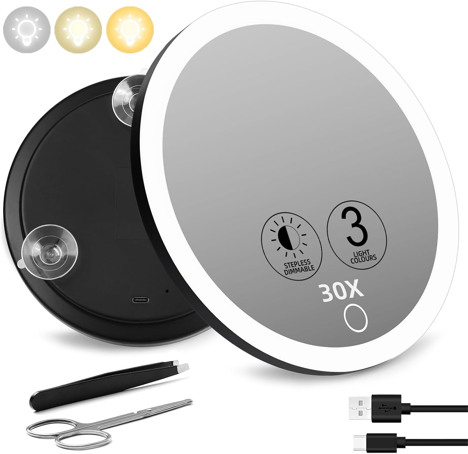 Bnphsin 30x magnifying mirror, 3.5 inches magnifying mirror with suction cup and 2pcs tweezers, black portable magnifier makeup. Magnifying mirror with light 30x, lighted makeup mirror 30x for precision makeup, 3 color modes and adjustable brightness, 360° swivel. Vergrößerungsspiegel 30x, 6inch großer schminkspiegel mit 30x vergrößerung, 3 saugnäpfe und 360° verstellbarer ständer für. Magnifying mirror 30x, 6 inch large makeup mirror with 30x magnification, 3 suction cups and 360° adjustable stand for hand, table. 3 light modes and adjustable brightness: