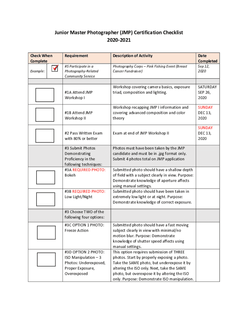 Fillable Online Junior Master Photographer (JMP) Certification