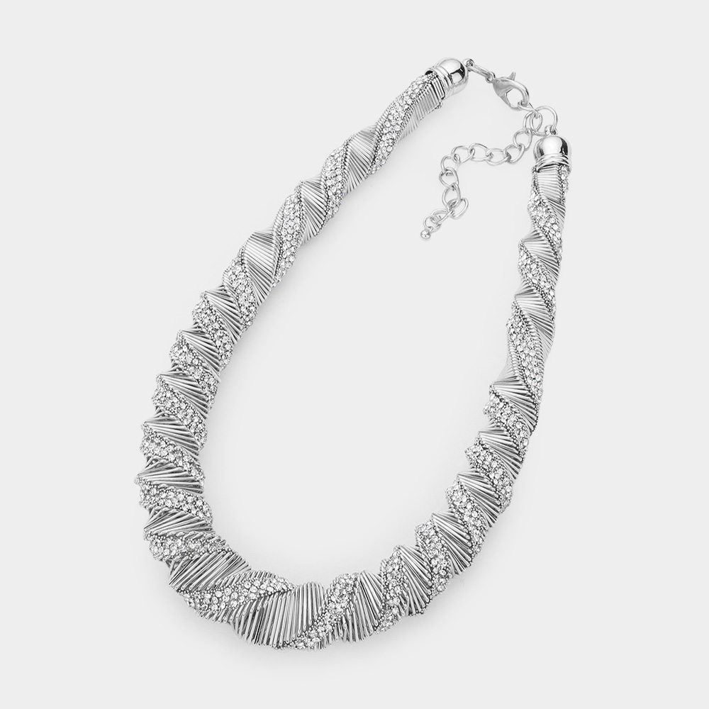 Rhinestone Paved Metal Accordion Twisted Necklace