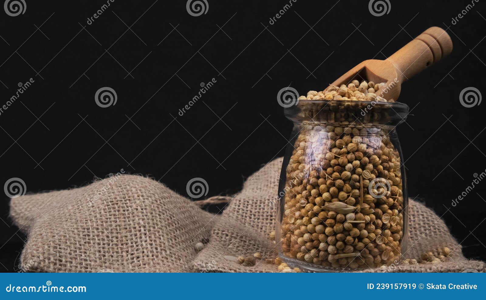 A Glass Jar of Coriander stock image. Image of wooden 239157919