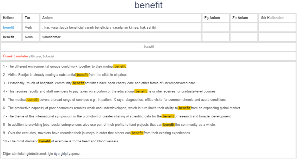 benefit ne demek, anlamı nedir YDS YÖKDİL İNGİLİZCETÜRKÇE