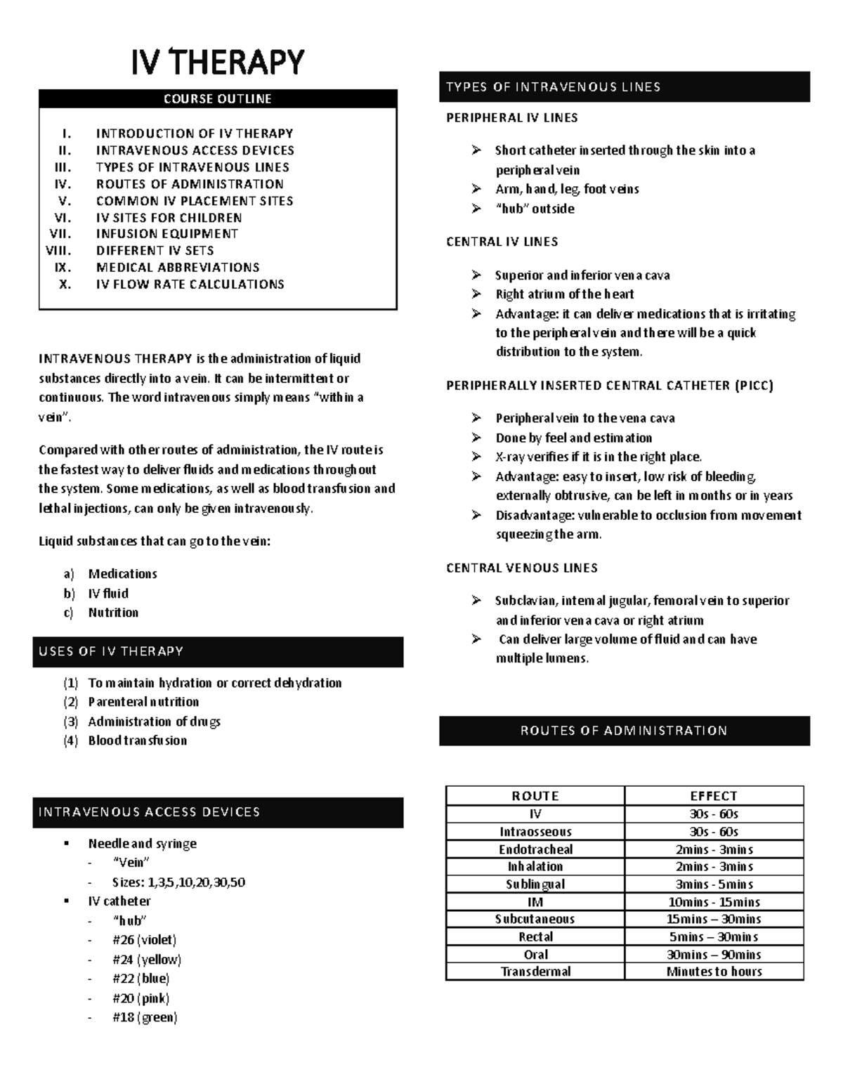 02 IV therapy summaries IV THERAPY COURSE OUTLINE I. INTRODUCTION