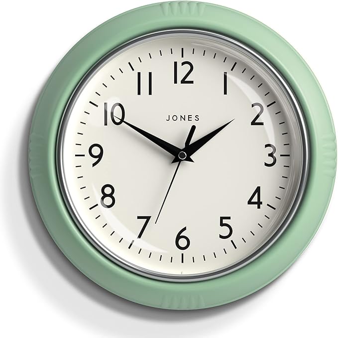 Jones Clocks® Retro Wall Clock Perfect for Kitchen Home Bedroom Office, The Ketchup Clock 25cm Jones 25Cm Wall Clock A wall clock with a railway dial and contemporary black case. At jones we specialise in creating stylish yet affordable small wall clocks. The railway dial is complimented, by spade and baton black hands, a straight cut. Where style and affordability come together. Jones clocks® ketchup wall clock | retro round clock | 25cm | grey | easy to read. Jones 25Cm Wall Clock.