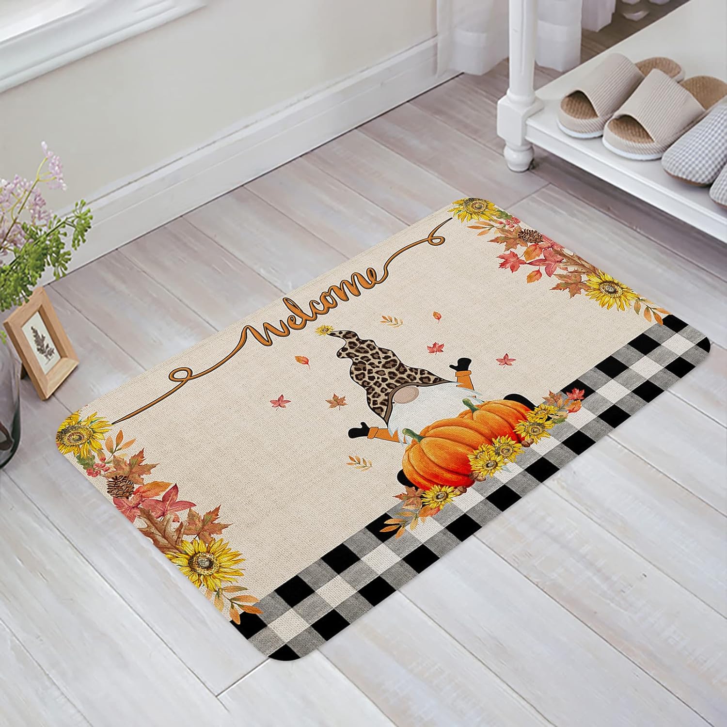 Thanksgiving Gnome Pumpkin Indoor Doormat Low Pile Mat 16 X 24 Inches Maple