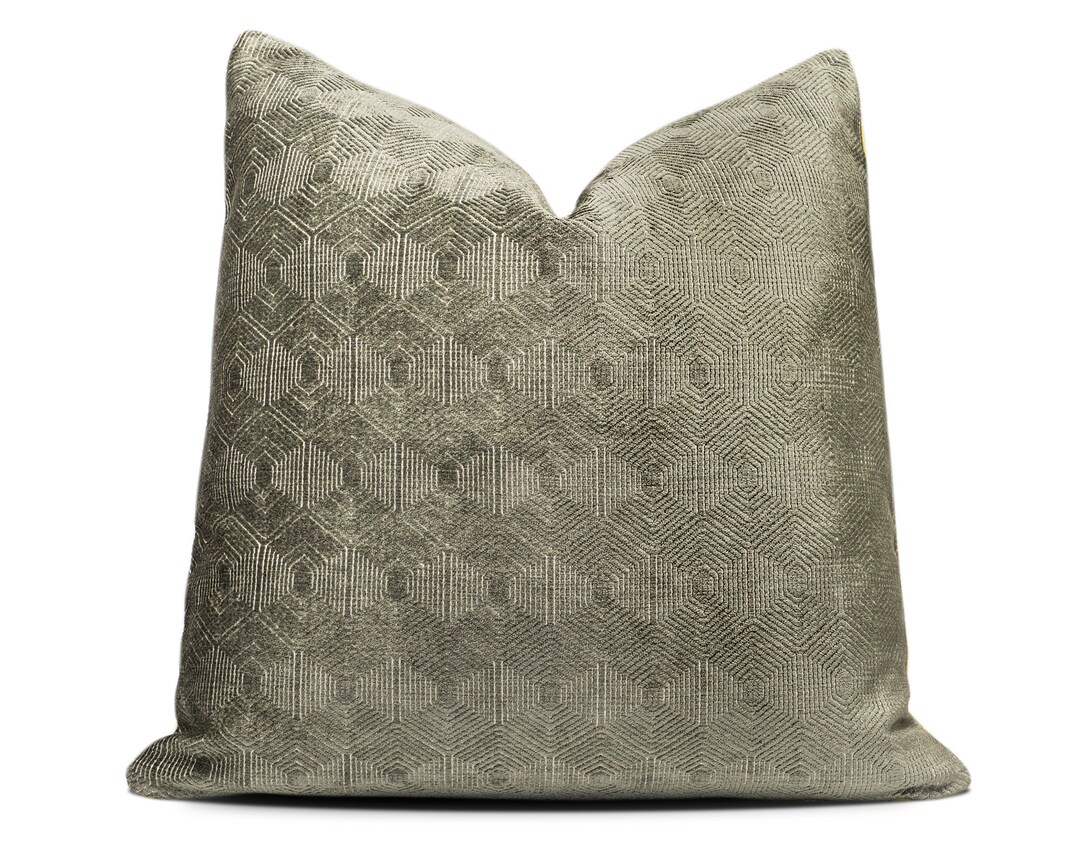 Geometric Velvet Throw Pillow Cover Moss Green Throw Pillow Grafton