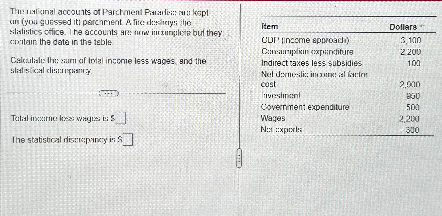Solved The national accounts of Parchment Paradise are kept